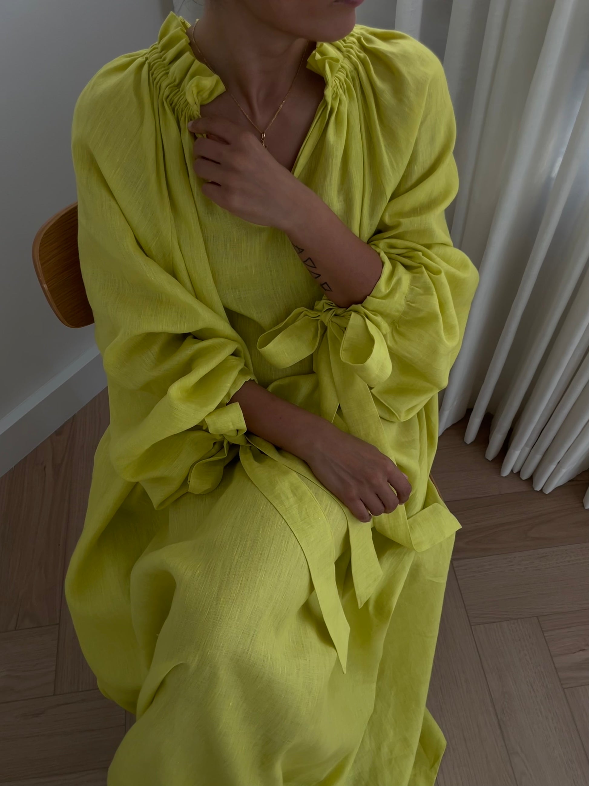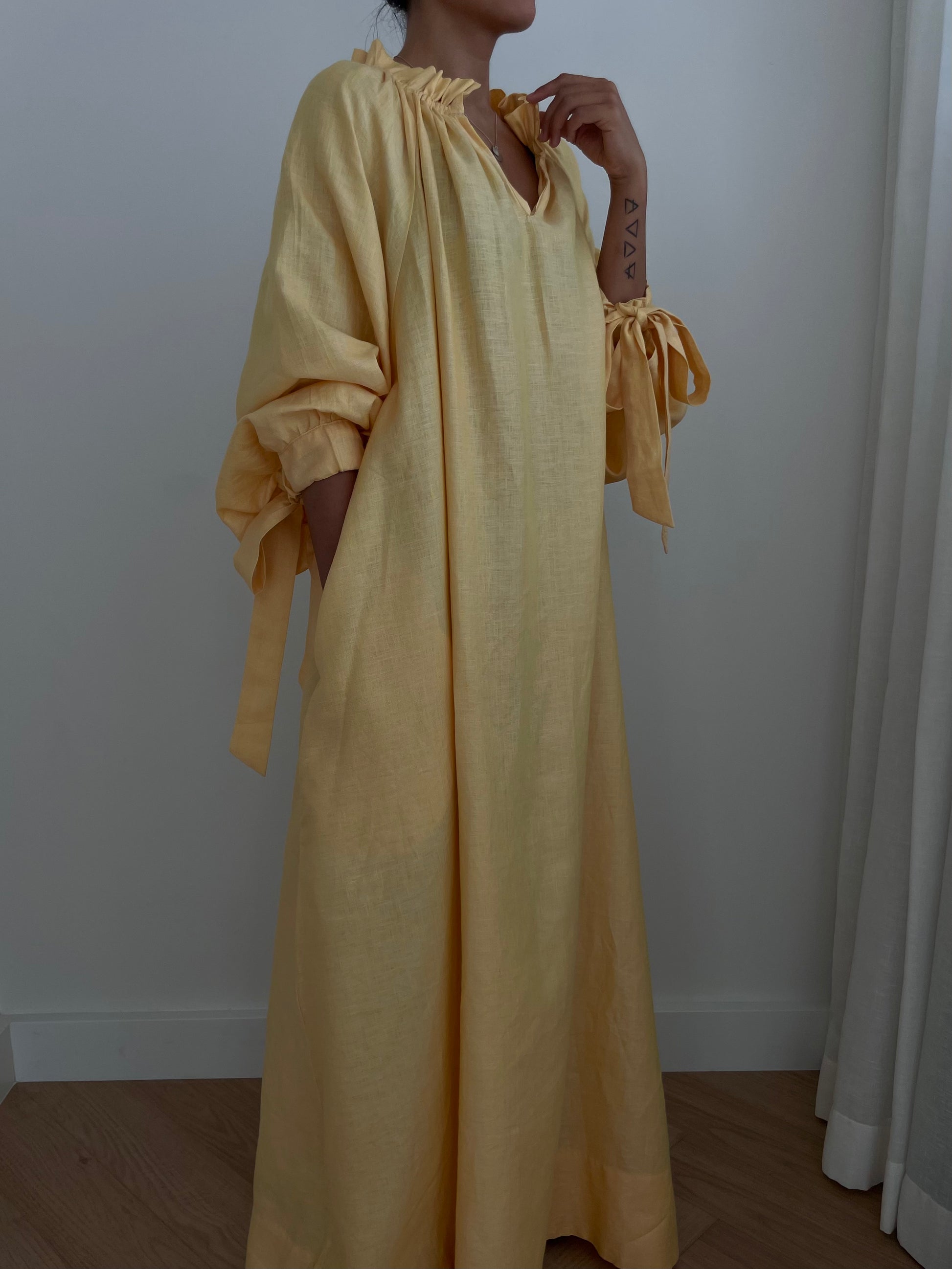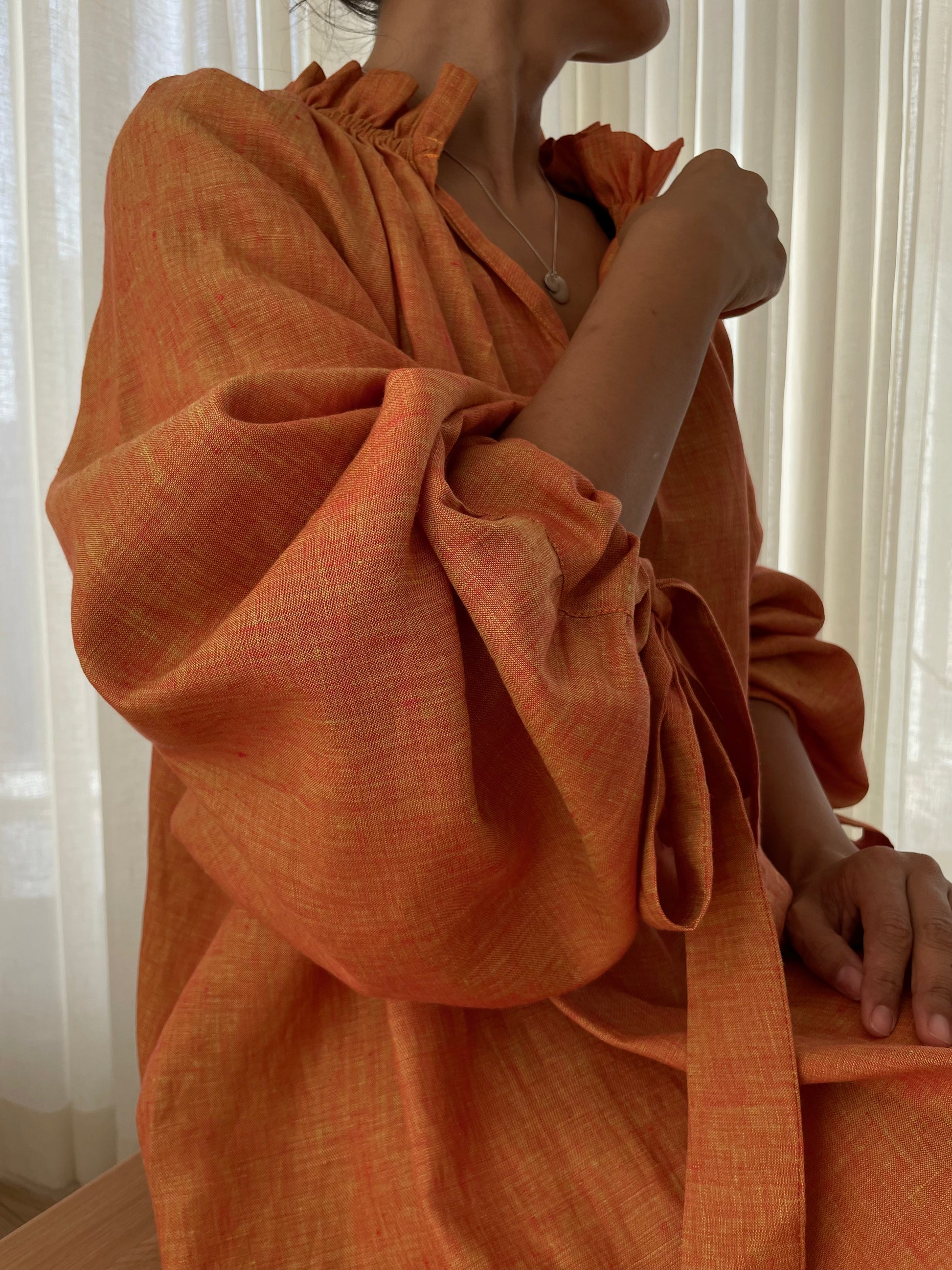 - Long sleeves with tie cuffs